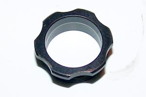 The muzzle nut, separated from the slide. Note the six scallops around the edges of the nut. CZ ships a special tool with the '97B to remove it, but it's not strictly needed because the muzzle nut doesn't require a lot of tension.